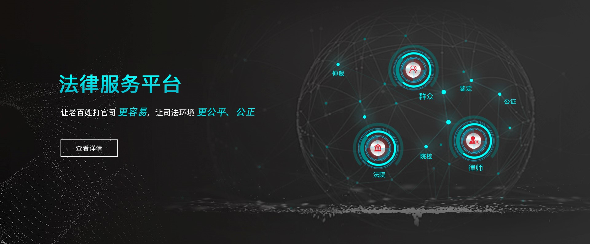 為行業(yè)用戶提供全方位的“一站式解決方案”"國內泛司法行業(yè)綜合解決方案的供應商,致力于司法領域信息化建設,是法律云服務的倡導者。